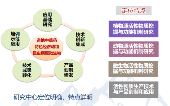 活性物质生物技术教育部工程研究中心,聚焦长江上游生态屏障、三峡库区特色农林产业、医药产业(上游载体),立足重庆、面向西南、服务西南;持续为成渝地区双城经济圈发展、人民生命健康、生态文明、乡村振兴等国家重大战略做出积极的贡献。以活性物质为主线,研究活性物质载体的工程化种养、高效组分的提取、加工与创新应用研究,引领带动山区农民脱贫致富、乡村振兴。