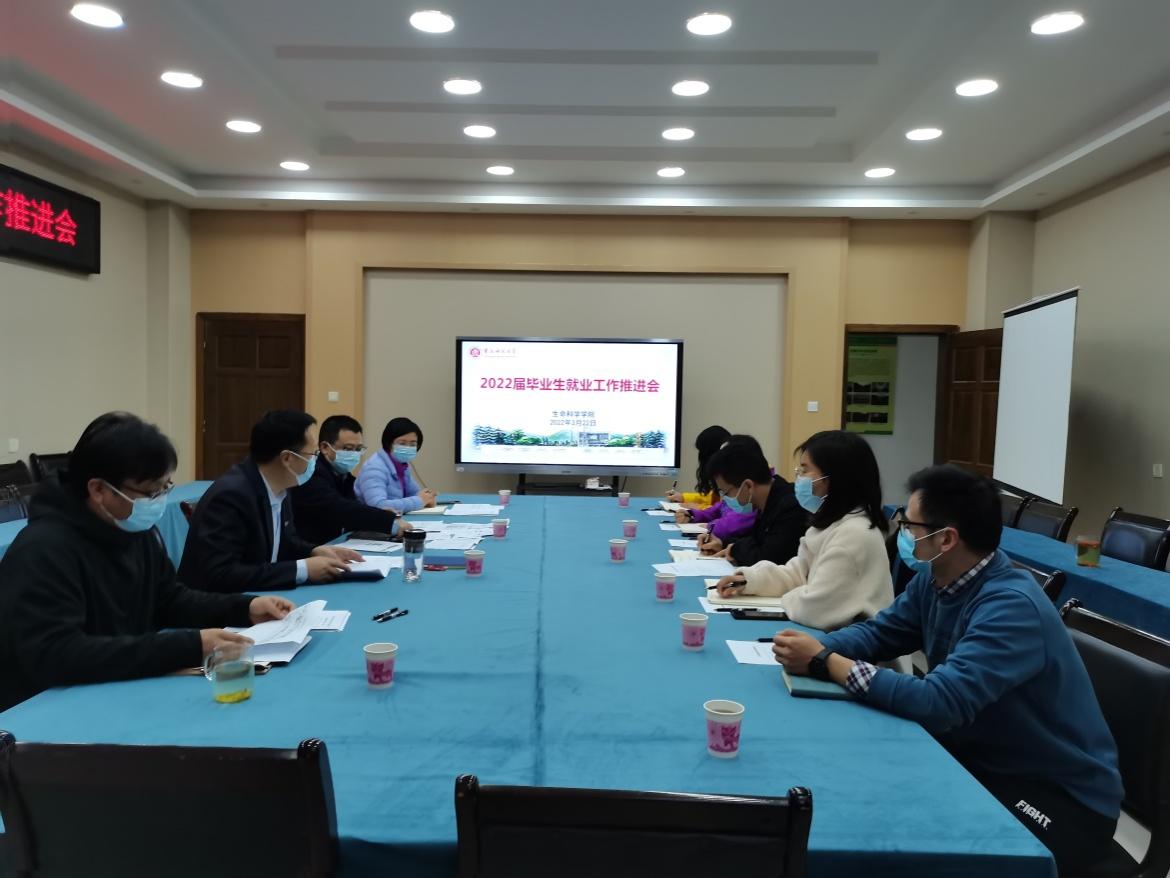 会上,学院党委副书记刘艳坤首先发言。她首先介绍了目前生科院整体的就业状况并分专业介绍了毕业生就业去向落实情况。然后,她从健全学科专业调整机制、健全产教融合育人机制、完善市场化社会化就业促进机制、充分发挥政策性岗位吸纳作用、强化就业指导服务、完善就业帮扶机制等方面,汇报了以就业为导向的分类培养教育改革方案。随后,毕业班辅导员余婷婷介绍了2022届毕业生就业推进工作中遇到的痛点和难点以及下一步工作重点和发力点。
