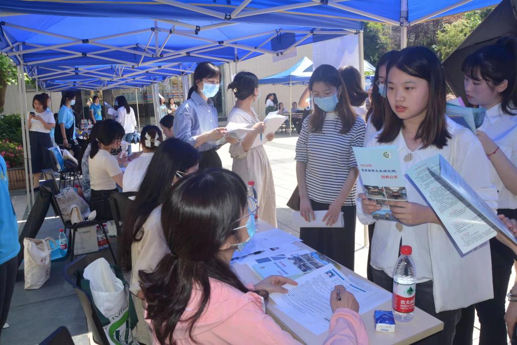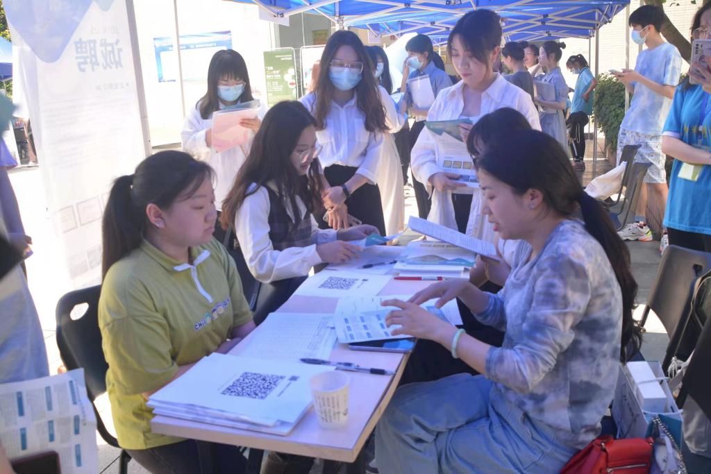 5月12日下午,逸夫楼广场气氛热烈,260余名本科、研究生分时段、分批次到场。毕业生们积极投递简历、现场面试,向用人单位推介自己。“准毕业”年级学生也来到现场观摩学习,与企业HR主动交流,加深对企业的了解,争取实习机会。