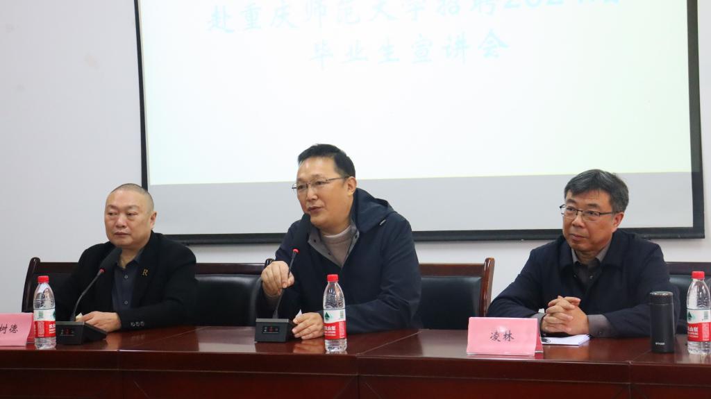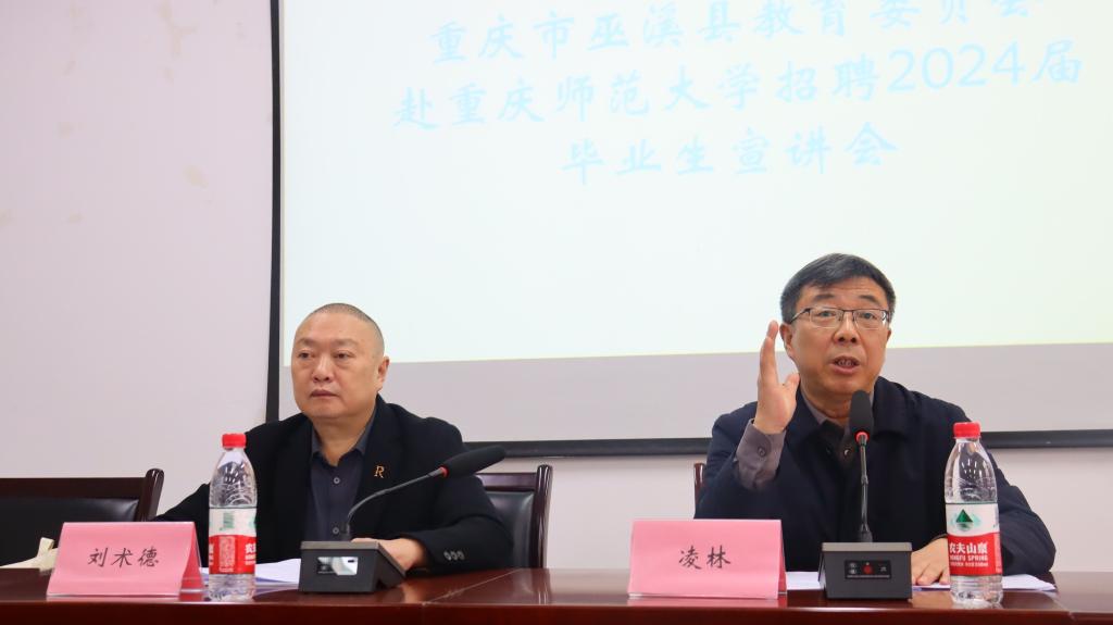 11月22日,由招生就业处主办、pa视讯官方集团承办的重庆市巫溪县教育委员会校园招聘2024届优秀毕业生宣讲会在集贤楼233会议室顺利举办。巫溪县教育工委副书记凌林和教委人事科科长刘术德现场进行招聘宣讲。招就处和学院相关领导和老师以及学校2024届毕业生共计120余人参加。