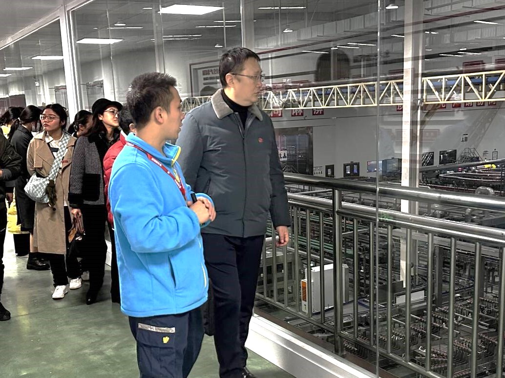 在重庆东鹏维他命饮料有限公司,付长波一行在公司副厂长曾宪武、人力资源总经理江帮玲等企业代表的陪同下参观了企业文化展厅、全自动生产线、智能立体仓库以及现代化检测实验室。参观结束后,双方举行了座谈会。企业代表详细介绍了企业当前的发展概况、主营业务、人才需求和人才培养等,对我院输送的实习生和毕业生给予了高度认可,并着眼长远为如何进一步促进供需对接、提升就业育人效果以及深化合作关系等方面提供了许多富有建设性的建议。正在公司进行实习的我院学生代表叶秋雁在座谈会上分享了自己的实习体验和收获,表示将在学院和企业共同培养下努力提升自己的专业技能和综合素质,为未来的职业发展打下坚实的基础。
