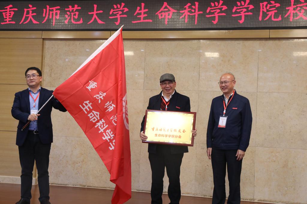 | PA视讯登录入口副校长杨如安教授为校友分会授会牌、会旗 |