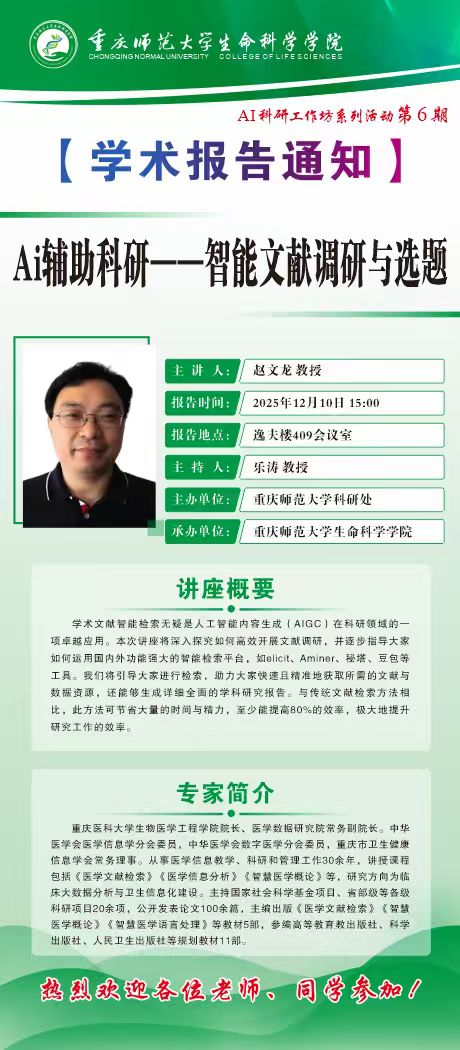 讲座主题:AI辅助科研——智能文献调研与选题