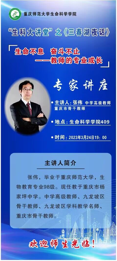 讲座名称:生科大讲堂”之《旦春湖夜话》生命不息奋斗不止—教师的专业成长