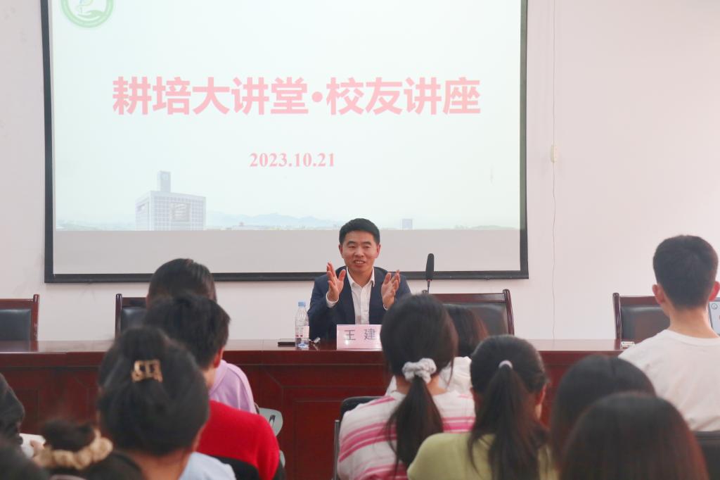 王建校友以《如何提高个人机会获取性》为题,从用人单位需要什么样的大学生的角度思考大学生在就业面前如何提高自身机会获取性。他指出,在考虑问题和机会获取性时,我们需要深入分析表面现象,理解其背后的深层原因和影响因素,从而找到问题的核心所在,从而采取有效的解决方案得到最大机会获取性。他强调,一要意识上规避惯性,行动上构建主动性,综合上形成独特性,基于现有的人生经历,不追求范式,努力挖掘个人特长,让自己的求职简历有特色和亮点。二要思考用人单位在招聘时更关注求职者具备的哪些方面的能力,提醒同学们注重专业技能和岗位适应能力的提升。三要了解当前就业形势,做好自身毕业去向的选择,正确把握自身的现实情况,尽早做好相应准备,培养自我主动性与独特性。