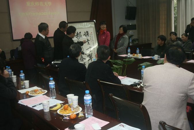座谈会上,77级校友还向学校和我院分别赠送了书法牌匾。77级校友还于12月2日上午参观了我校大学城校区以及我院标本馆和科研平台建设情况。