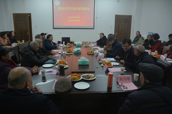 2018年1月18日,我院在逸夫实验楼131会议室组织退休老同志新春团拜会,共迎新春佳节,共叙发展大计。学院陈斌院长、万朝晖书记、张涛副院长、胡小强副书记和工会主席彭姜岚老师等及30余名老教师出席会议,会议由万朝晖书记主持。