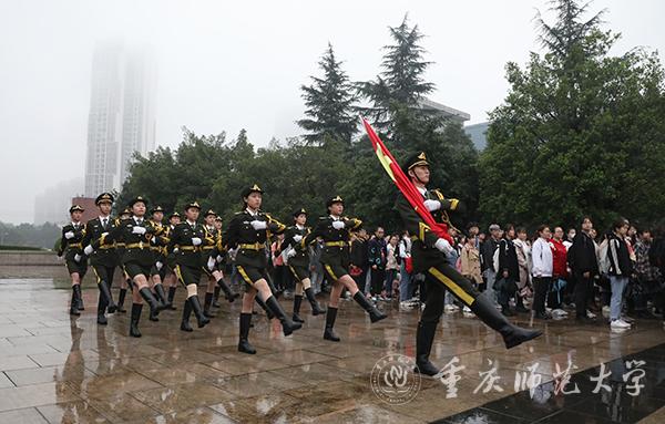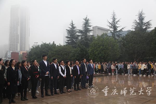 清晨的校园静谧而又清新。生科院师生列队整齐。