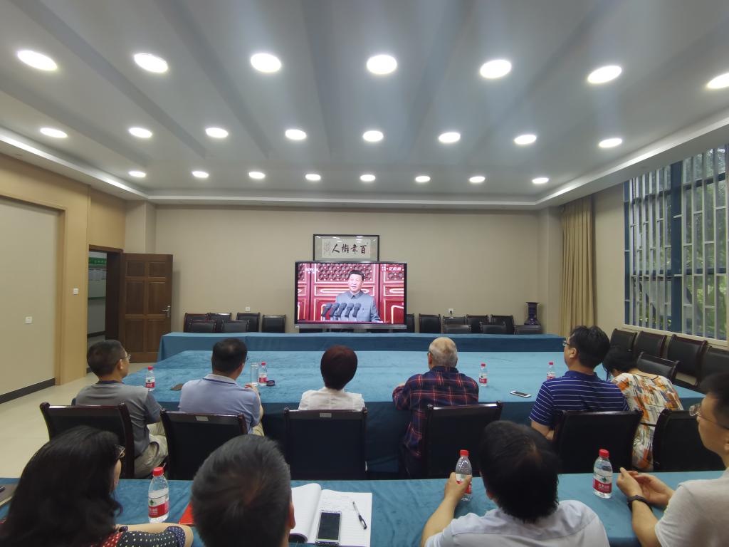 7月1日上午8时,庆祝中国共产党成立100周年大会在北京天安门广场隆重举行,习近平总书记发表重要讲话。pa视讯官方集团教师党员在逸夫实验楼131会议室集中学习收看,共同庆祝中国共产党百年华诞。