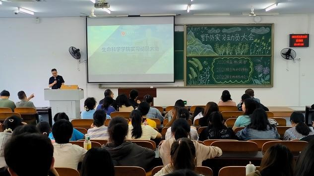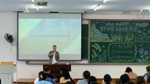 2023年5月11日13:00pa视讯官方集团野外实习动员大会在特教楼2507顺利召开。本次会议由生物科学系系主任郝友进教授主持,pa视讯官方集团党委书记付长波,党委副书记刘艳坤,生态实习小组、动物实习小组、植物实习小组等相关指导教师出席会议,参加动员会的是2022级生物科学、2021级生物科学(中外合作办学)、2020级森林保护专业全体学生。