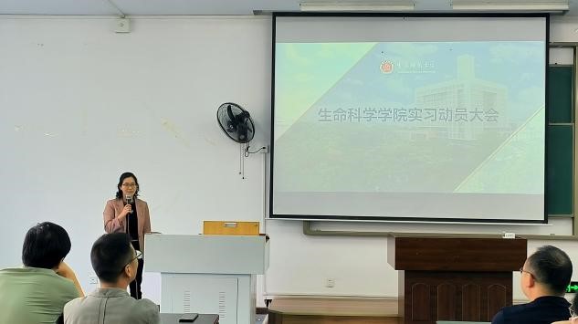 动员大会按议程依次进行,首先是夏继刚教授针对2021级生物科学(中外合作办学)专业的野外实习进行动员,夏教授希望同学们在野外实习不能只顾游山玩水,更要深刻了解自然,多观察多思考;并用达尔文、孟德尔等伟人的事迹告诉同学们,要将所学的知识与实践相结合,思考、探究生态系统的规律;在实习过程中,也要多与老师交流,抱着多思、多问、好学的心态去完成这次实习;同时,也要求同学们一定注意安全,保护好自己;最后,夏老师预祝全体同学在未来的一周实习中都能有丰富的收获,满载而归!