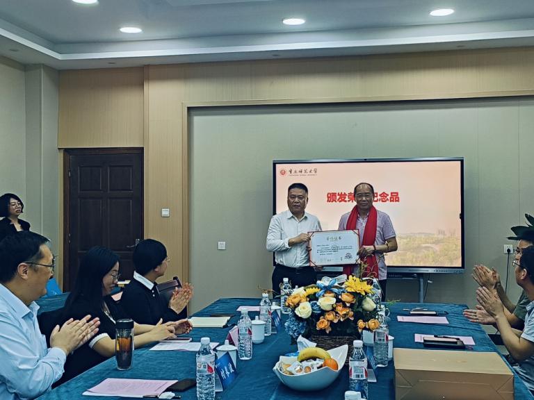 随后,李英文教授发表荣休感言。他首先对学校、学院、同事们的支持表示衷心的感谢,荣休仪式很有意义。他感慨地说,大家休戚与共,努力为学院付出,参与见证了学院的不断发展壮大,一路走来非常不容易。接着,他寄语年轻教师,要确定教学科研的奋斗方向,多关心国家最新的各项政策规范,要将科研方向及时与国家需求接轨,服务国家发展,实现个人发展和国家发展同步进行。他还对学校和学院提出宝贵的建议,表达了对学院未来的殷切希望,祝福学院发展得越来越好。在发言中,李教授流露出对学校和学院的深厚情感,表示将继续发挥余热,积极支持学校、学院、团队的各项事业发展。