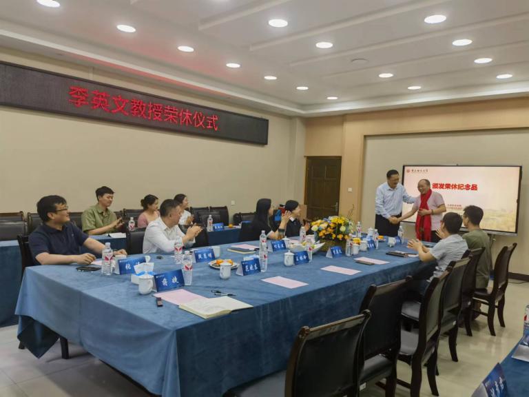 2024年4月28日下午,pa视讯官方集团在逸夫楼131会议室为李英文教授举行荣休仪式。荣休仪式由pa视讯官方集团党委书记付长波主持,学校人事处副处长段慧明、离退休处副处长李玉平、学院党政班子、工会和教研室代表、新进青年教师、李英文教授团队和学生共30余人,共同见证这一光辉时刻。