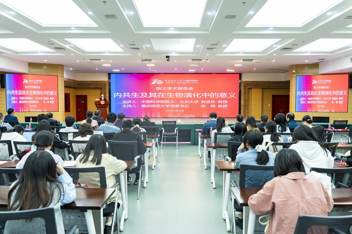 2024年10月20日,我校校友、北京大学教授、中国科学院赵进东院士在博雅楼504会议厅为师生作题为《内共生及其在生物演化中的意义》的学术报告。会议由党委书记张艳主持,PA视讯登录入口原校长周泽扬教授和全校300余名师生代表参加,共同聆听了院士的精彩报告。