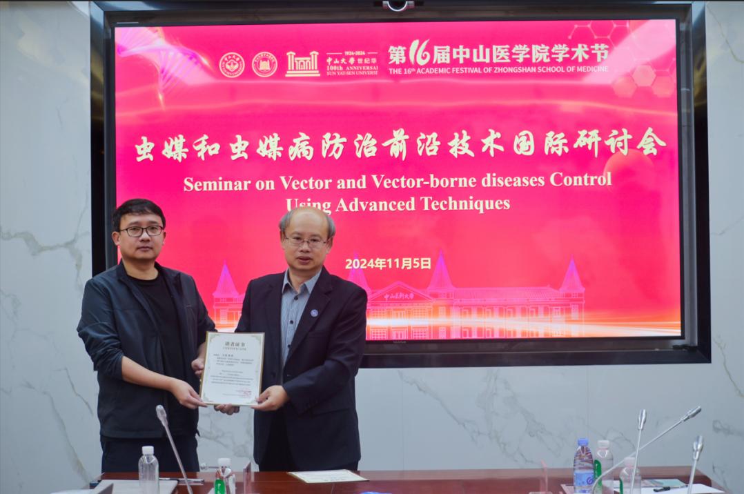 2024年11月4-6日,我院乔梁教授应中山大学中山医学院邀请,出席“虫媒和虫媒病防治前沿技术国际研讨会”暨第16届中山医学院学术节活动。本次研讨会由中山大学中山医学院主办,国家原子能机构核技术(昆虫不育)研发中心承办,汇聚了来自北京大学、浙江大学、中山大学、暨南大学、南京医科大学、南方医科大学、美国塔夫茨大学以及法国农业研究国际合作中心等国内外知名高校和科研机构的虫媒及虫媒病控制领域的著名专家学者。会议聚焦虫媒及虫媒病防治的热点议题,深入探讨了虫媒防控的最新进展、创新控制策略以及虫媒病新药研发等前沿内容,为该领域的发展注入了智慧动能和创新活力。