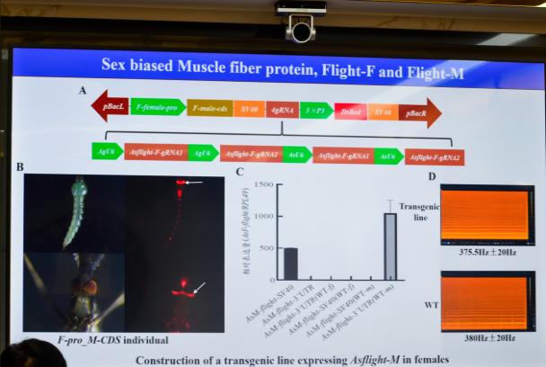 会上,乔梁教授作了题为“The role of downstream structural genes in shaping the sexual dimorphism in mosquitoes and their potential utilization”的主题报告,集中展示了课题组在过去三年中取得的重要研究进展。报告详细阐述了蚊虫性别偏斜表达概貌,以及关键结构基因在蚊虫性别二型性部位塑造和功能维系中的作用,揭示了代表性结构基因的精细调控模式和演化特点;并探究了这些基因在蚊虫遗传防控中的应用潜力。报告以独特的视角和多样化的研究方法赢得了在场专家的广泛关注和热烈讨论,促发了思想上的深入碰撞与交流。