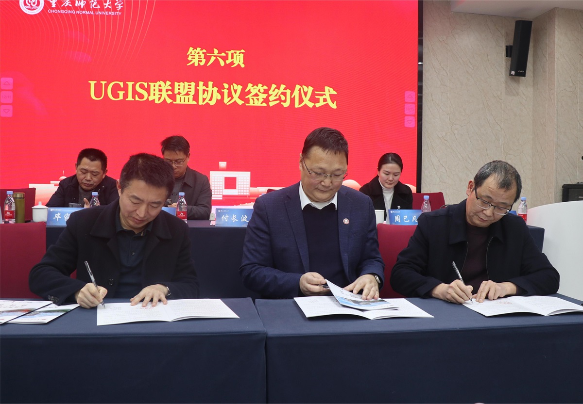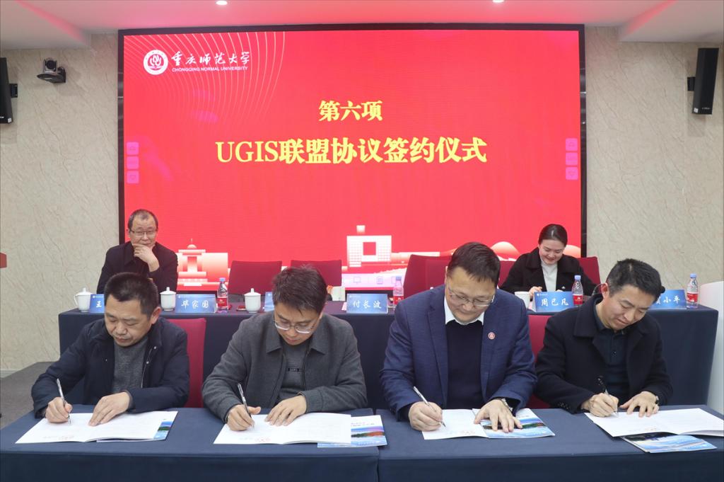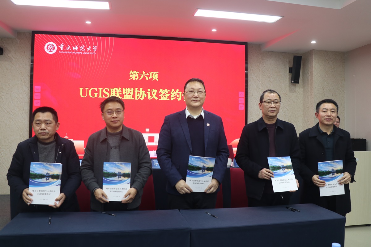 付长波书记代表学校与云阳县教委、教学进修学院、云阳县双江中学和云阳县第四初级中学签订“地方公费师范生人才培养UGIS联盟协议”与“实践教学基地协议书”,并代表学校向云阳县双江中学和云阳县第四初级中学颁授了教育实践基地联盟牌匾。