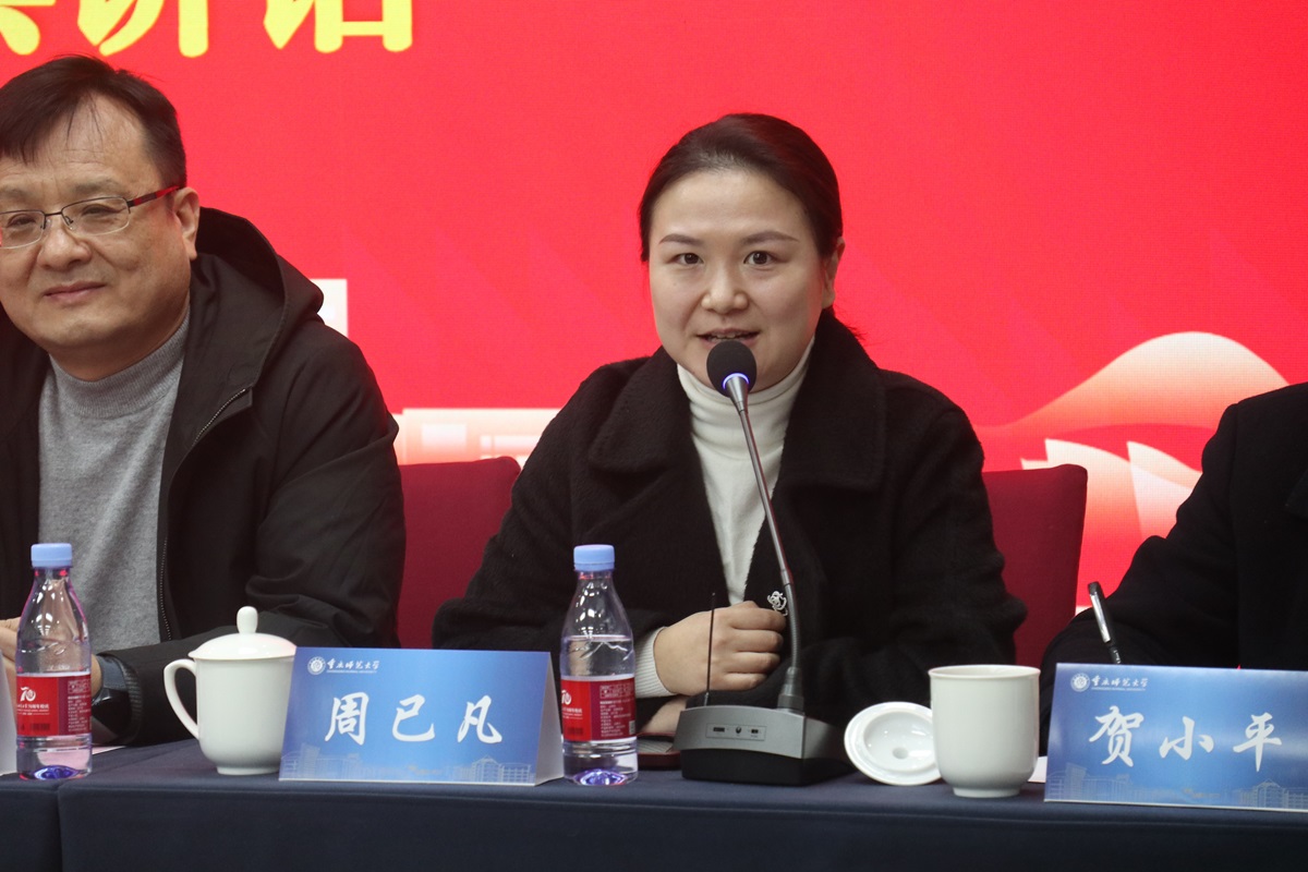 我院生物科学(师范)专业2022级覃胤菱和2023级刘为民同学代表定向云阳的地方公费师范生进行了发言。在互动交流环节,同学们就关切的问题踊跃发言,参会的老师们逐一耐心解答。