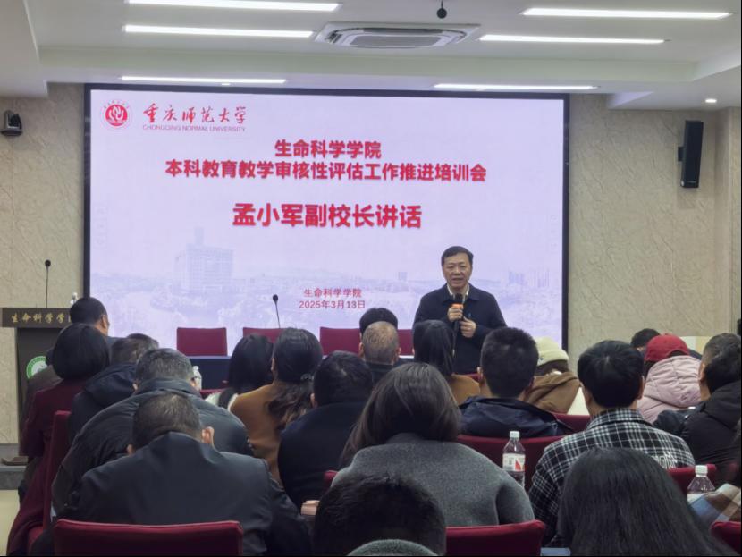 2025年3月13日下午,pa视讯官方集团在逸夫楼409会议室召开全体教职工大会,专题部署本科教育教学审核性评估工作并进行培训。学院党委书记付长波作专题培训,学校党委常委、副校长孟小军出席会议并作总结讲话。