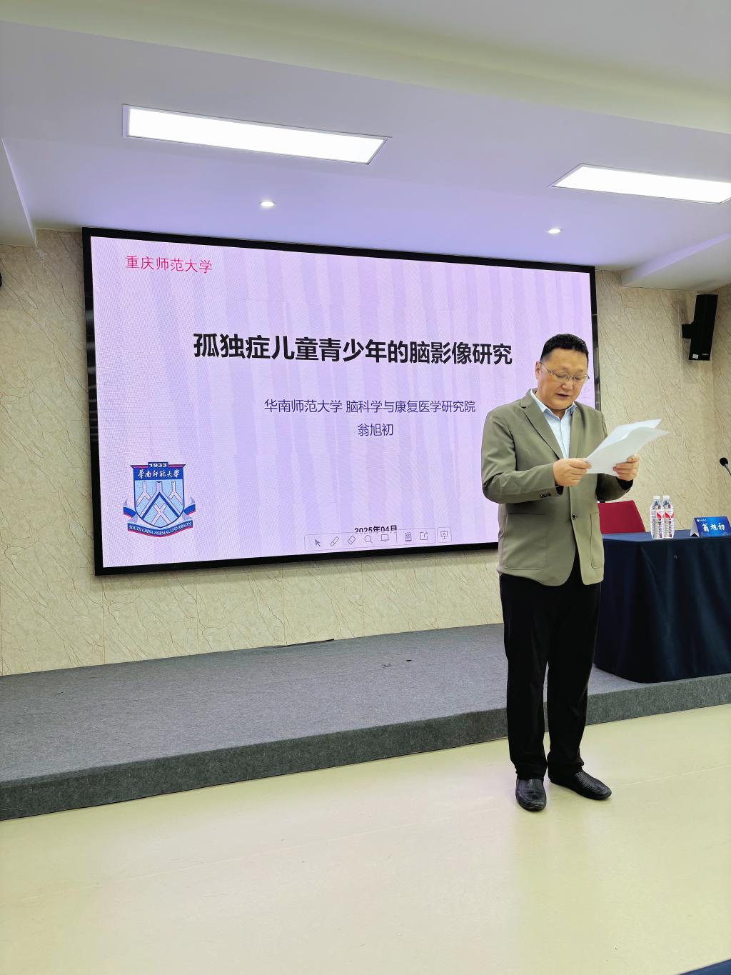 为拓宽师生学术视野,促进学科交叉融合,2025年4月30日,华南师范大学翁旭初教授应邀莅临pa视讯官方集团,开展题为《孤独症儿童青少年的脑影像研究》的专题学术讲座。讲座在逸夫实验楼409举行,由pa视讯官方集团党委书记付长波主持,pa视讯官方集团及校内其他学院的师生代表共同聆听了此次讲座。