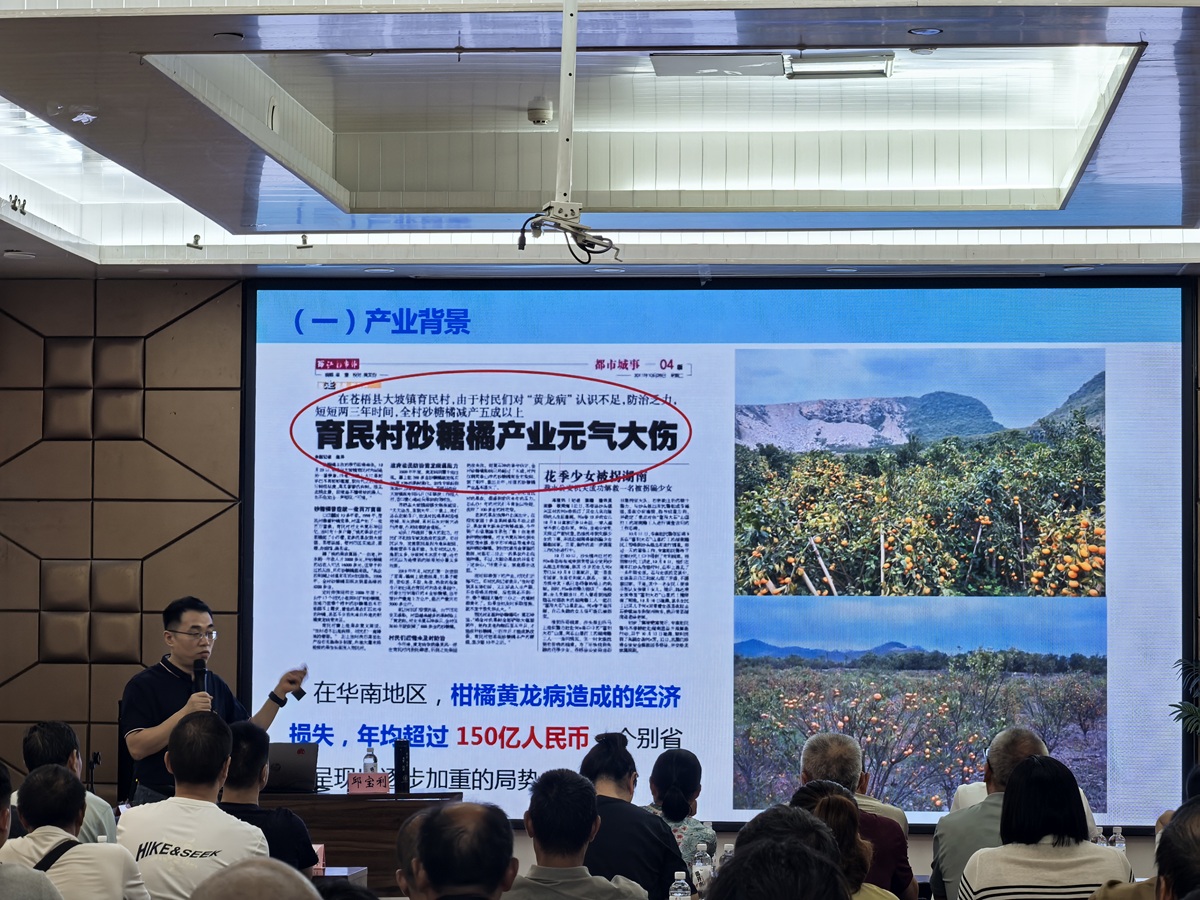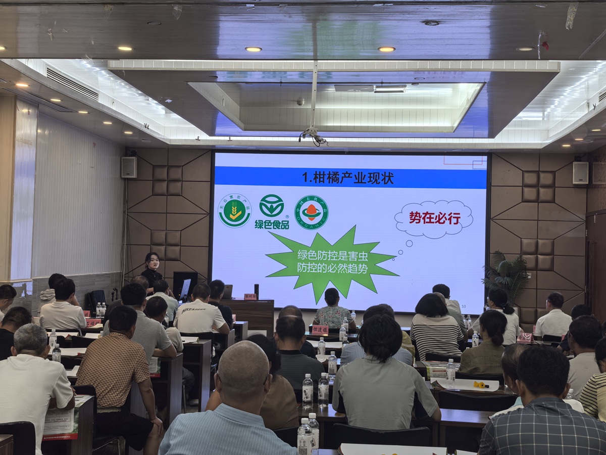 长寿区各街镇植保植检工作人员及柑橘种植业主代表参加了本次培训。培训会上,邱宝利教授结合长寿区柑橘产业发展实际需求,聚焦产业痛点难点,系统讲授了柑橘黄龙病与柑橘木虱可持续绿色防控技术体系的构建与应用,重点介绍了柑橘柑橘木虱及黄龙病的科学识别、监测预警与高效绿色防控策略。张利荷博士详细讲授了柑橘主要病虫害绿色防控及统防统治策略。长寿区柑橘种植面积达30万亩,本次培训内容突出柑橘“绿色防控”与“统防统治”的深度融合,旨在提升基层农技推广人员和种植主体的技术水平,为保障全区柑橘产业安全、有效阻断疫情传播、促进产业绿色可持续发展提供坚实的科技支撑。