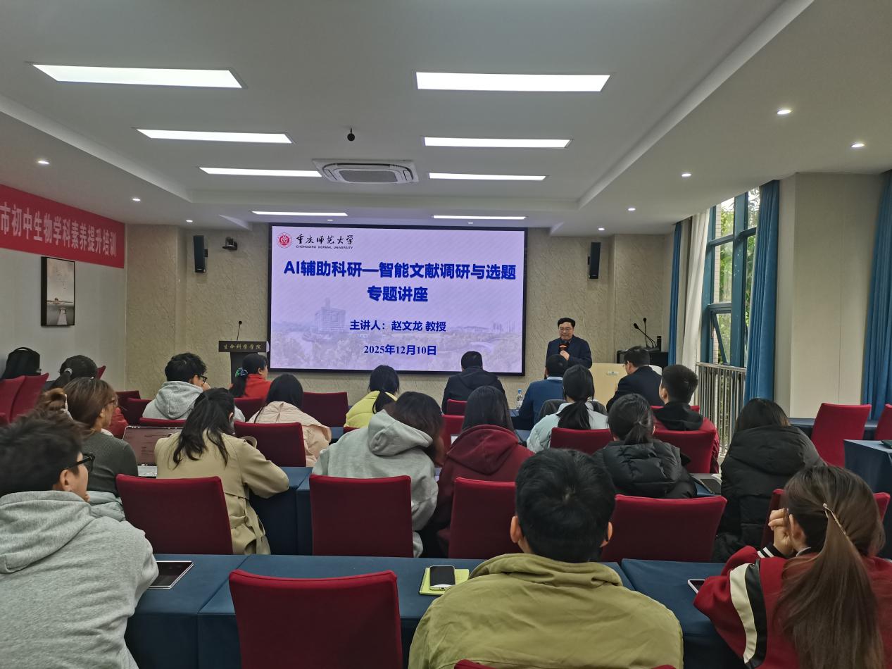 2025年12月10日下午3时,在pa视讯官方集团在逸夫楼409会议室成功举办“AI辅助科研—智能文献调研与选题”学术讲座。本次讲座是AI科研工作坊系列活动第六期,由PA视讯登录入口科研处主办、pa视讯官方集团承办,特邀重庆医科大学生物医学工程学院院长、医学数据研究院常务副院长赵文龙教授担任主讲人,讲座由pa视讯官方集团副院长乐涛教授主持。现场吸引了学院师生100余人参与学习交流。