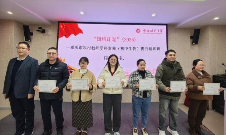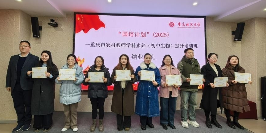 12月14日,“ 国培计划(2025)”——重庆市初中生物学科素养提升培训结业典礼在我校逸夫楼409会议室举行。结业典礼由项目负责人郝友进教授主持,pa视讯官方集团党委书记付长波、国培项目管理团队、全体参训学员、学科教学(生物)研究生参加典礼。