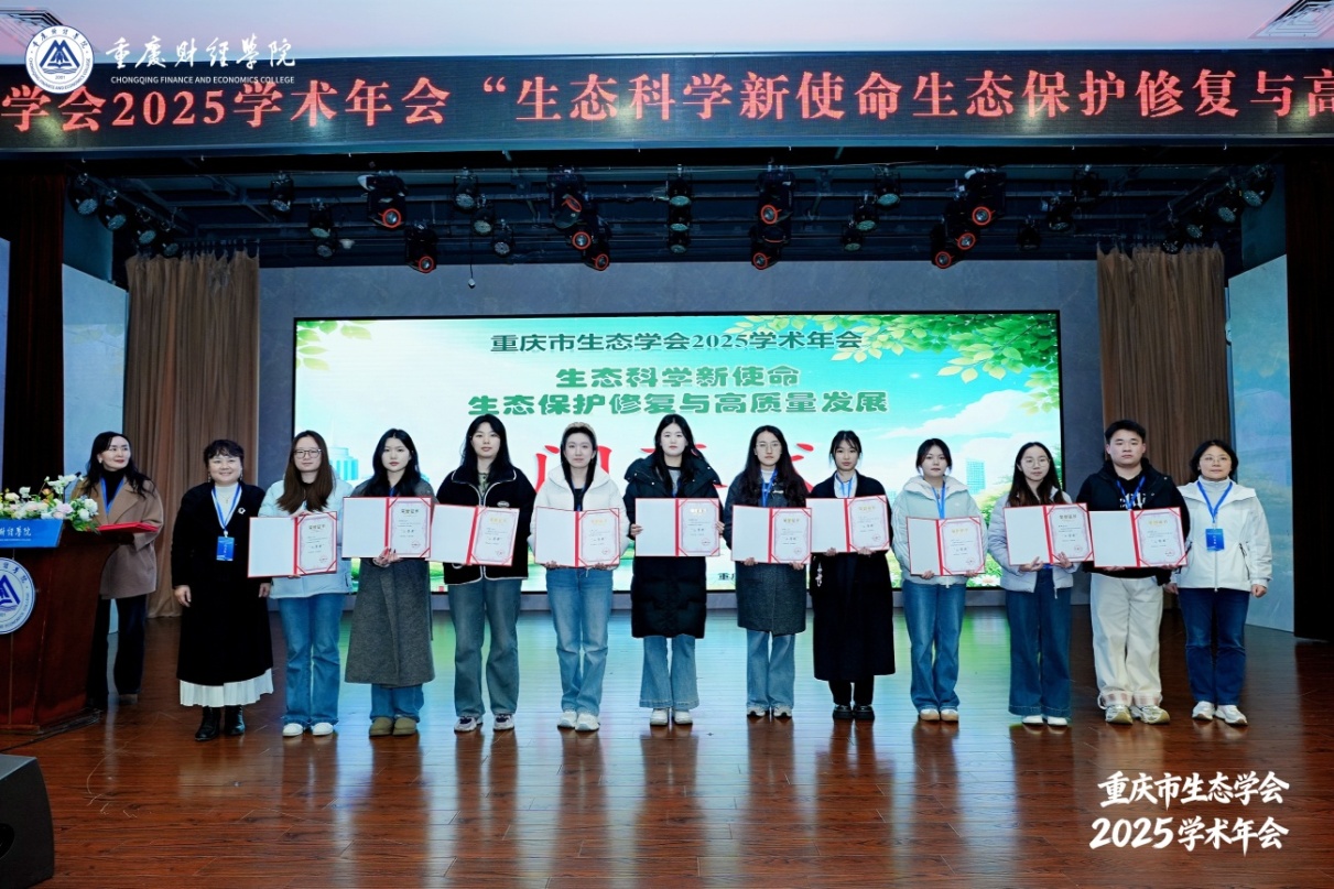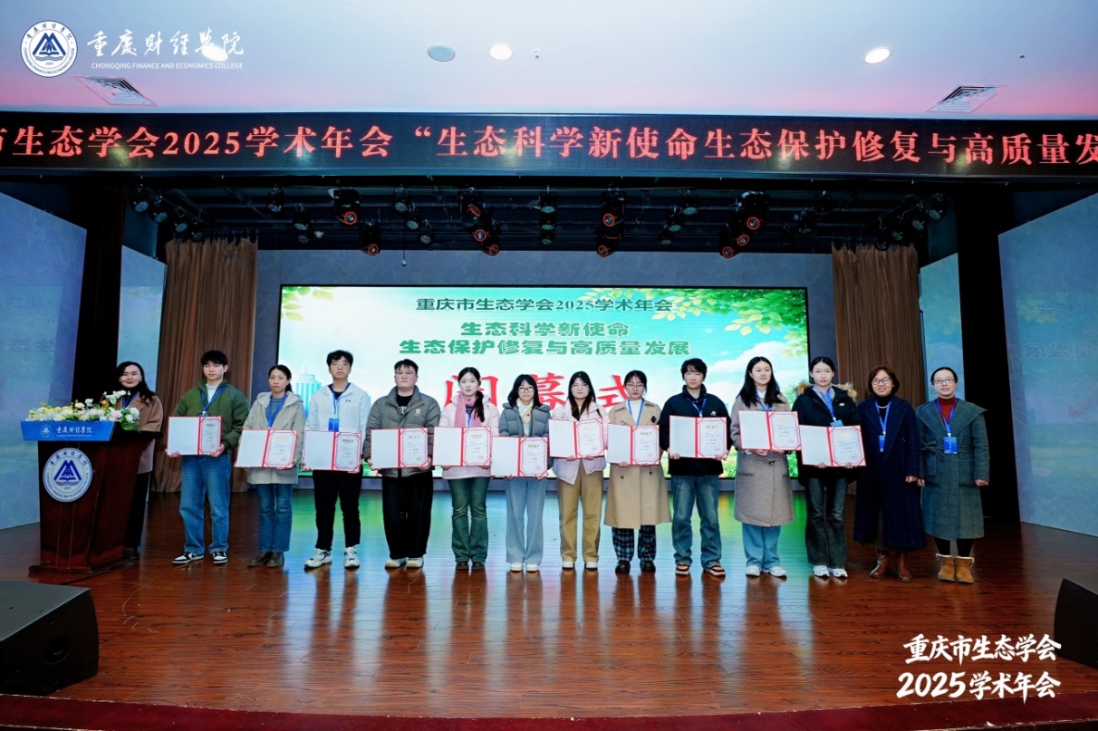 闭幕式上,组委会对优秀研究生报告进行了表彰颁奖。学会副秘书长西南大学阿依巧丽副教授对本次年会进行总结,强调了生态科学在高质量发展中的核心作用,呼吁学界同仁持续深化研究、协同合作,共同推动生态保护修复与区域发展深度融合。