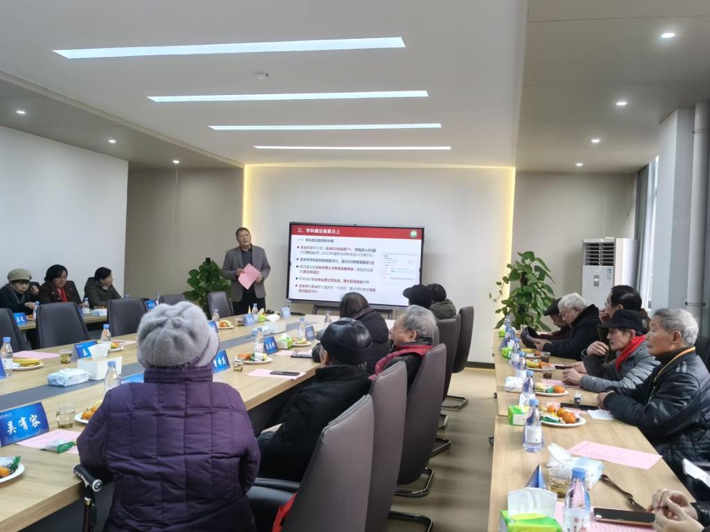 在听取汇报后,退休老同志们纷纷发言,对学院2025年取得的发展成就表示由衷地欣慰和自豪。他们深情回顾了自己在学院工作时的点点滴滴,对学院的发展历程感慨万千。退休老同志代表吴永恒老师表示,看到学院如今在党建和事业发展上取得的显著进步,感到无比骄傲和自豪。她感谢学院一直以来对退休老同志的关心与照顾,并表示将继续关注和支持学院的发展,为学院的未来贡献自己的力量。退休老同志代表蔡志华老师分享了自己在教学、科研等方面的宝贵经验,对学院的教学改革、科研创新等提出了许多中肯的建议和意见。他希望学院能够进一步加强基础学科、师资队伍建设,注重青年教师的培养和发展,为学院的可持续发展奠定坚实的基础。