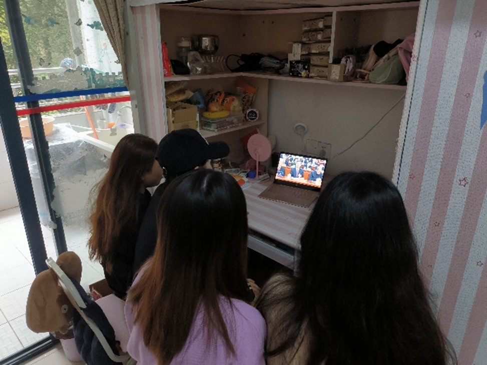 pa视讯官方集团党委组织号召全体师生员工,第一时间收听收看会议盛况,学习贯彻大会精神。上午10时,我院党政领导、师生党员、团员代表在学院逸夫楼131会议室集中观看开幕会。广大教职工、大学生以居家学习、自主学习等多平台多形式分散观看了开幕会盛况。