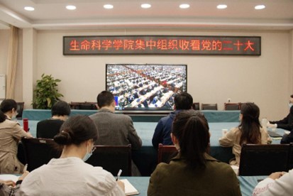 (以下六张:生科学子积极收看党的二十大开幕会)