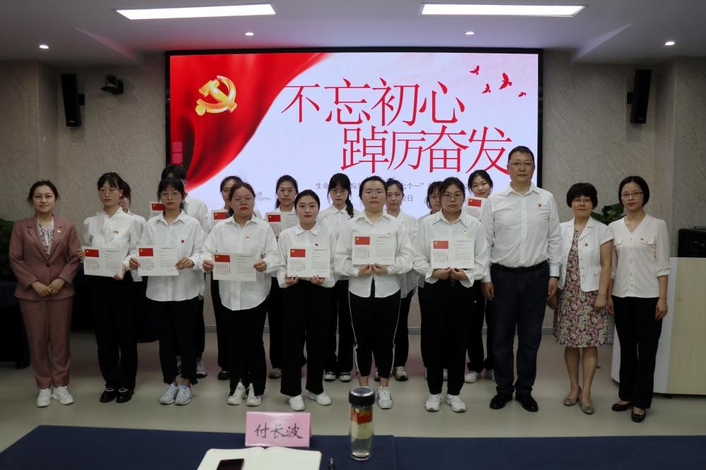 活动第二阶段,毕业生党员重温入党誓词,同时进行新发展党员入党宣誓。首先由党委组织员万老师宣读新发展党员名单,接着毕业生党员代表为新发展党员佩戴党徽,然后由付书记领誓,带领全体老党员重温入党誓词暨新发展党员入党宣誓。在鲜红的党旗前,全体党员举起右手,握紧拳头,庄严宣誓。既是严格入党程序,亦是对全体党员进一步加强党史和革命传统教育,赓续党的红色基因,激励全体党员坚定理想信念,不忘初心、牢记使命,坚定不移跟党走。