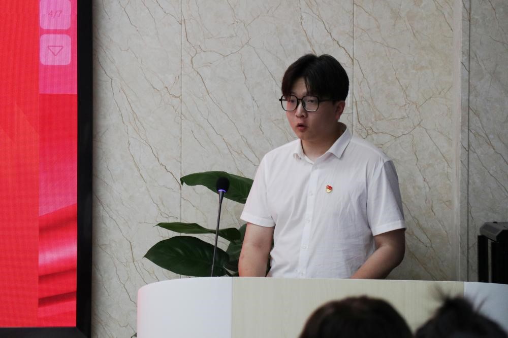 宣誓结束后,孙明博同志代表毕业生党员进行了发言暨向党组织进行毕业前的一次思想汇报。他表明:作为新时代的重师学子,重师培养了我们坚守初心的执着、追寻完美的品质和心怀家国的担当。我们将在今后的人生道路上,努力践行PA视讯登录入口“厚德 笃学 砺志 创新”的校训,传承“自强不信,躬行师道”的重师精神。