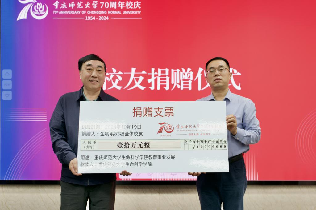 院长邱宝利代表学校接受83级生物系校友捐赠