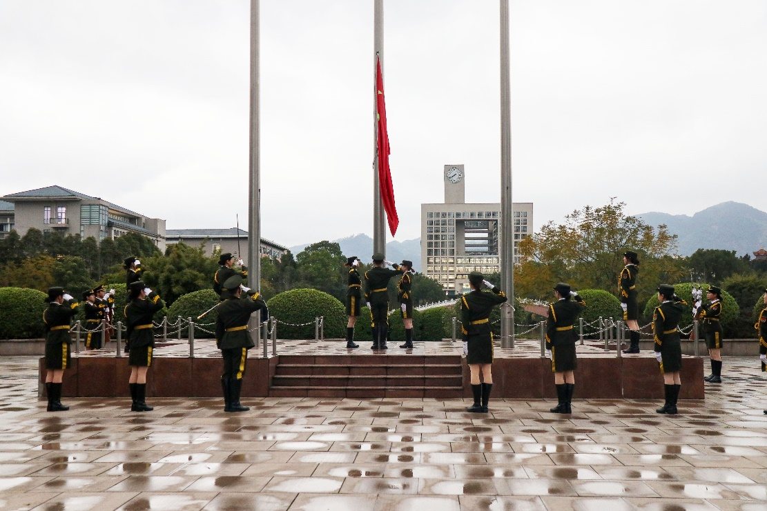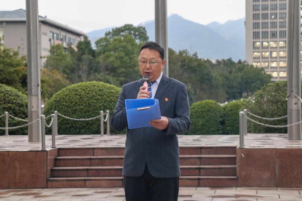 早晨7点40分,升旗仪式在庄严的国歌声中正式开始。全体人员肃立,面向国旗行注目礼,五星红旗在晨光中冉冉升起,迎风飘扬。