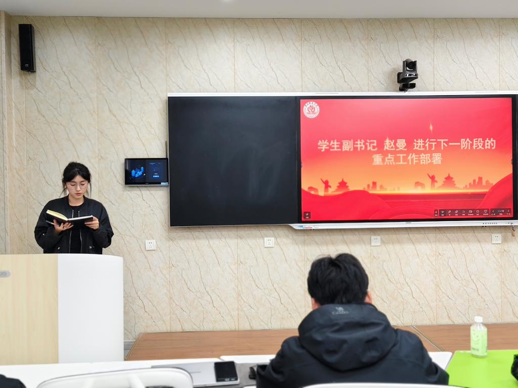 学生副书记赵曼对下一阶段重点工作进行部署,明确各部门需围绕重点任务协同推进,并提出具体要求。她鼓励大家在工作中进一步强化责任意识,提升执行力,为学院团委、学生会高效运行提供保障。