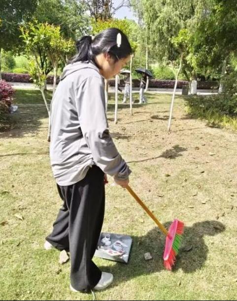 随后,“林小青”活动正式开始,同学们被分成五组,每组六人,领取工具后围绕三春湖清理花坛中的垃圾和落叶。大家不怕脏、不怕累,认真清理每一个角落,用实际行动为保护校园环境贡献力量。