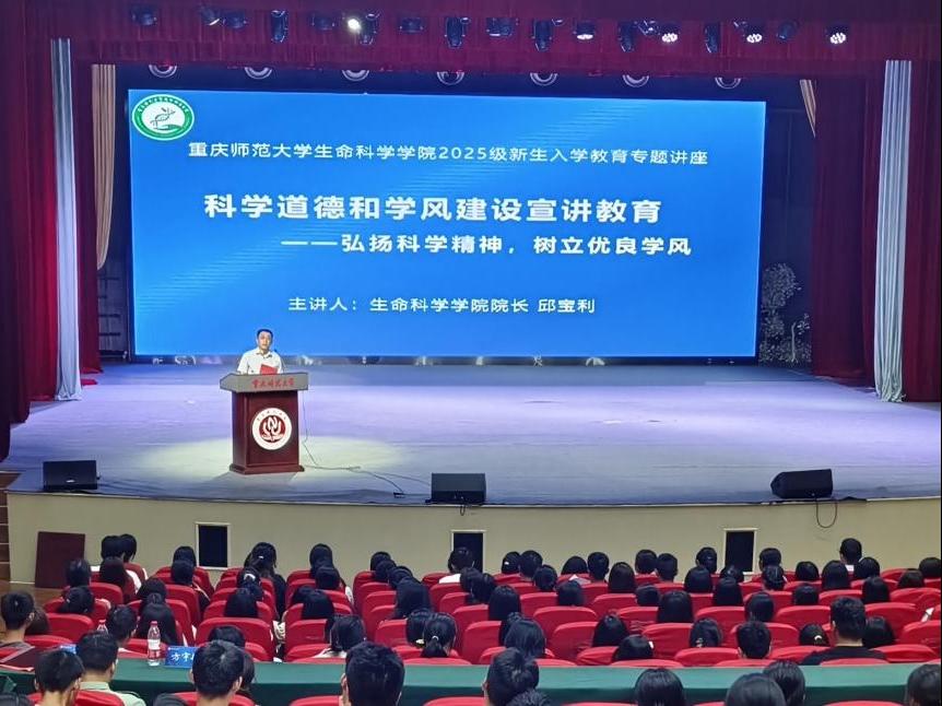 表彰结束后,邱宝利院长以“弘扬科学精神,树立优良学风”为主题开展教育讲座。邱宝利院长结合数十年科研与育人经验,从阐释科学精神、明确科学道德、强调科研伦理、解读学术诚信、细化学术规范五大板块深入讲解,并对新生提出相应要求。同时,他也鼓励新生要敢于尝试、敢为人先,要积极加入导师实验室参与科研项目,参与各类大赛与创新创业大赛等。
