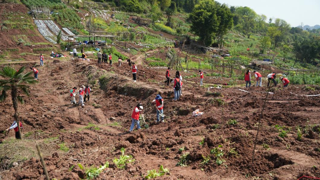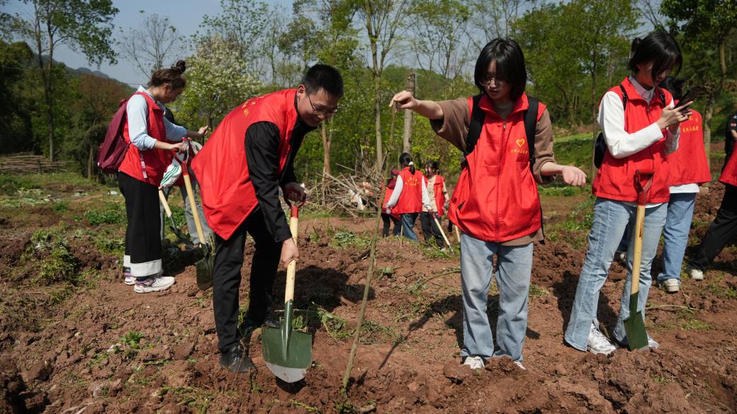 在黑黑的土坡上,pa视讯官方集团“青马工程”的学员们成为了一道亮丽的风景线。他们身着红色青年志愿者服装,手持铁锹、水桶等工具,投入这场“绿色”劳动。他们分工合作,有的负责搬运树苗,有的负责浇水,还有的负责填土。春日午后骄阳炙烤下,每个人都满怀热情,即便汗流浃背、也全力以赴,用实际行动诠释着雷锋精神。