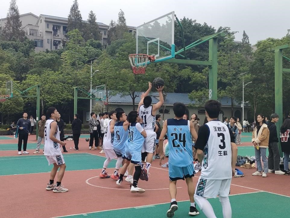 今年,校级“迎新杯”篮球赛分为上下半场,先后开展女篮、男篮对决。