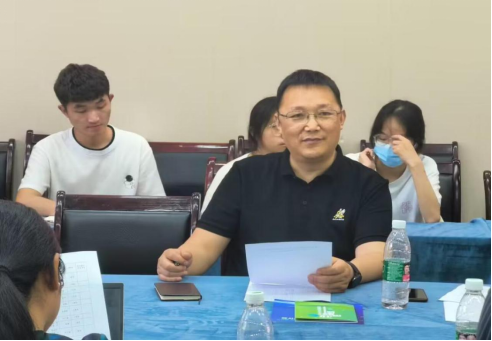 付长波书记介绍了我院拟参赛项目的情况,就学院开展大学生创新创业教育和岳永兰书记一行进行了深入的讨论交流。就赛道选择、项目的创新性、团队成员的能力素养方面给参赛团队提出了建议。