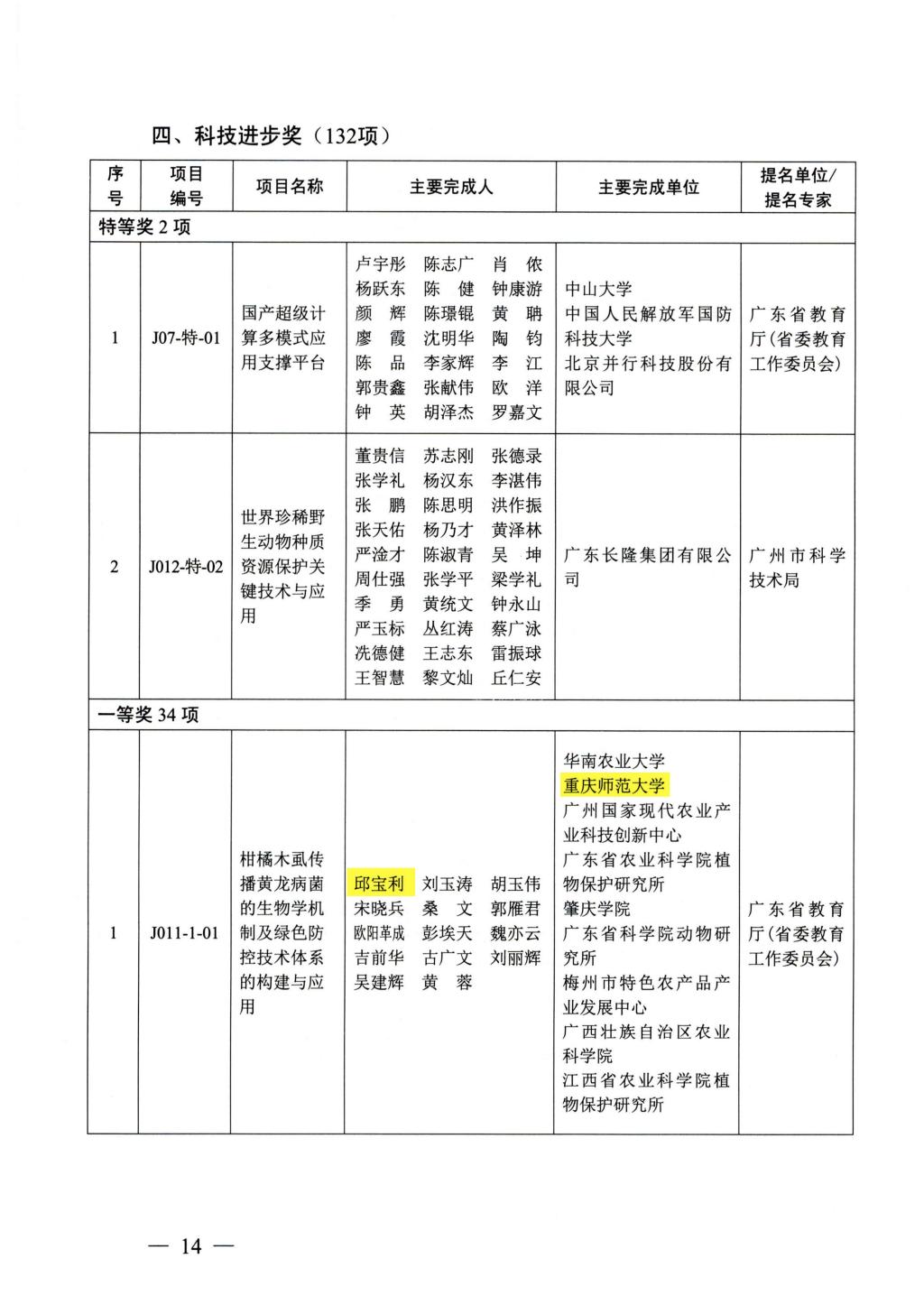近日,广东省人民政府公布了2022年度广东省科学技术奖的获奖名单,我校pa视讯官方集团媒介昆虫研究团队邱宝利教授作为第一完成人、PA视讯登录入口作为第二完成单位,获得了2022年度的广东省科技进步“一等奖”。