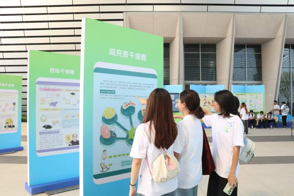会议开始前,同学们来到室外展馆参观学习。展区内陈列了丰富的干细胞知识展板,内容详实、图文并茂,同学们纷纷驻足学习,积极交流讨论,对干细胞这一“生命种子”有了更直观且深入的认识。