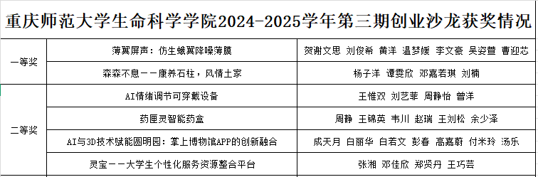 在本次创业沙龙活动评审中,评审环节采用多元化评分机制。最终,经综合加权核算,确定了此次创业沙龙活动的获奖项目。本次创业沙龙项目一等奖两个,二等奖四个,三等奖六个,优秀奖若干个。