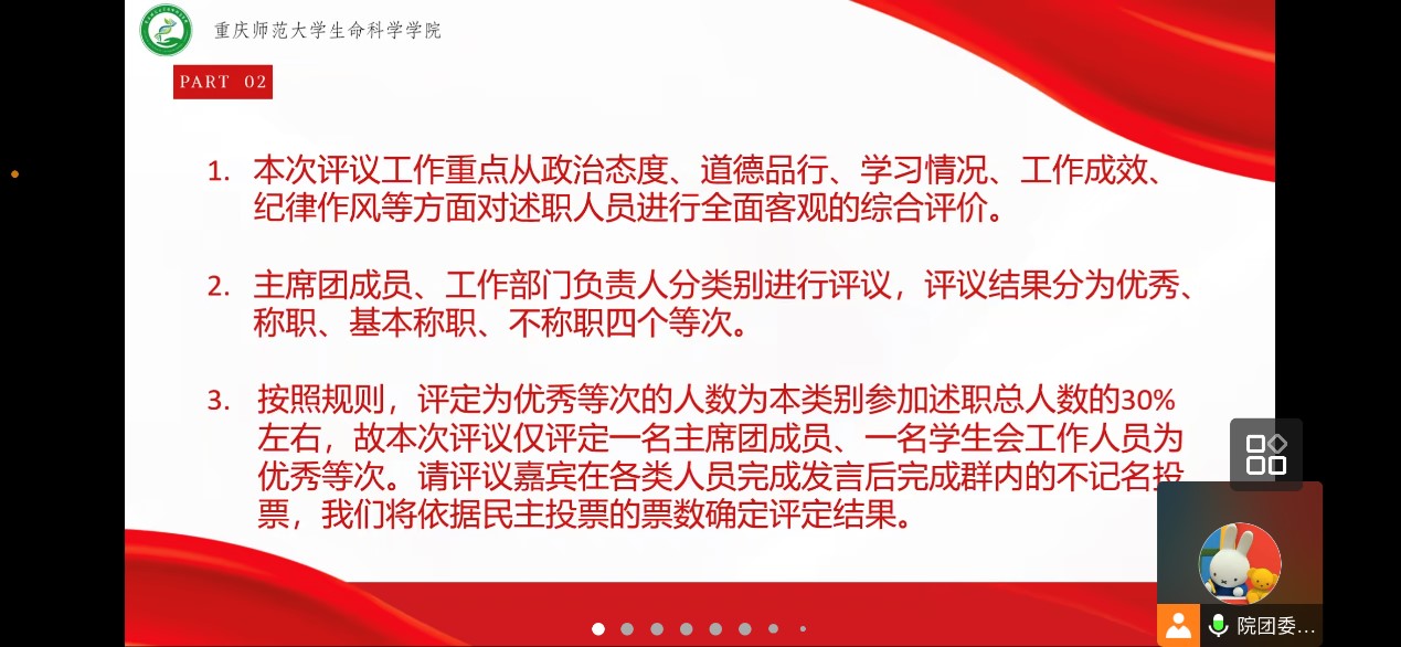 本学期的学习生活即将结束,学生会的各项工作已接近尾声。为了对这一学期的工作做出及时的反馈,对各部门的工作做出有效的考核,pa视讯官方集团,PA视讯登录入口学生会于2023年1月4日在线上隆重召开2022-2023学年度第一学期述职评议会。