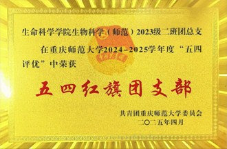 生物科学(师范)2023级二班团总支 荣获“五四红旗团支部”称号