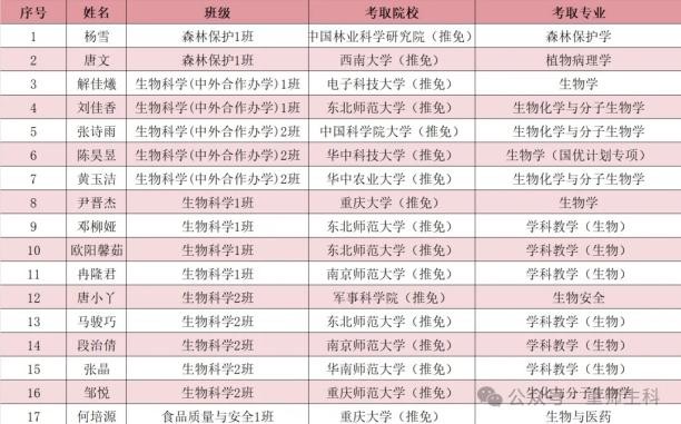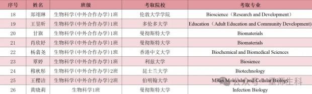 在学院全体师生的共同努力下,我院2025届学子在研究生考试中再创佳绩!截止目前,共计9人成功考取QS百强名校(QS世界大学排名是世界三大权威排名之一),境外升学人数创历史新高!录取院校涵盖伦敦大学学院(QS排名第9位)、多伦多大学(QS排名第25名)、曼彻斯特大学(QS排名第34位)、香港中文大学(QS排名第36位)等国际顶尖名校。国内升学方面,67名学子斩获中国科学院大学、华中科技大学、电子科技大学、重庆大学、吉林大学、西南大学等国内“双一流”建设高校的录取通知书;另有3人被军事科学院、中国农业科学院等科研机构录取,升学质量实现新突破。