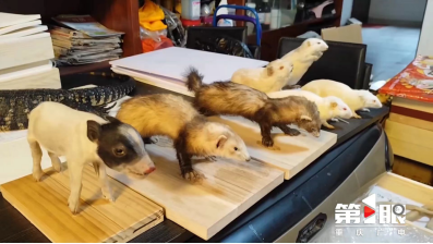 桌上“排排站”的小猪、花枝鼠、刺猬;书柜顶上的小熊猫、公鸡;沙发旁的松鼠、鳄鱼;堆满客厅和过道的昆虫……一走进“标本爷爷”唐安科的家,第1眼新闻记者就被这“无处不在”的标本惊呆了。
