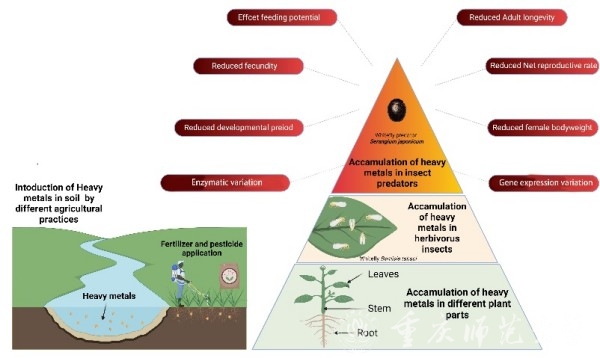 近日,我院pa视讯官方集团媒介昆虫研究团队、活性物质生物技术教育部工程研究中心邱宝利教授课题组,在自然环境中植物和昆虫参与的重金属的传递与累积机制领域取得新的研究进展,相关成果发表在学术期刊《Journal of Hazardous Materials》(中科院一区Top期刊,影响因子13.6)。